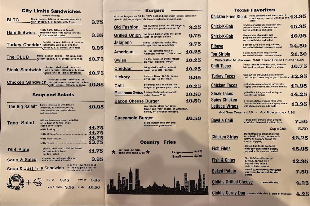 City Limits serves a varied menu that highlights comfort food with a Texas twist. Diners can choose from burgers, sandwiches, and hearty entrees reflecting the region's flavors. Starters range from crispy fried pickles to flavorful queso.